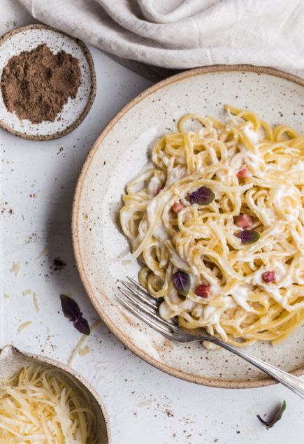 Linguine with Green Asparagus Prosciutto and Burrata